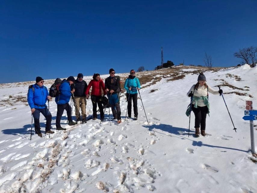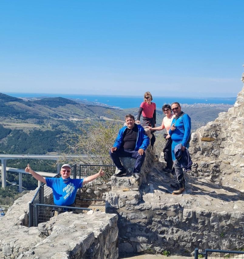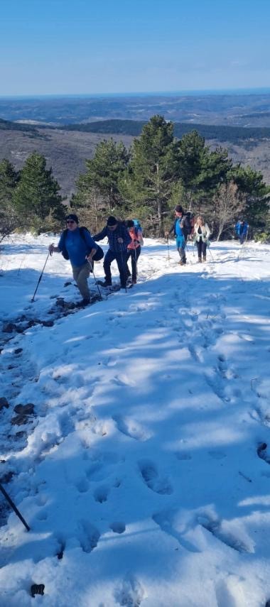 U subotu 28.3.2026. godine naš član Ljubo Žaja odlučio je zajedničkim snagama sa kolegom iz HPD „Planik“ Umag i kolegama iz IPA Ljubljana pohoditi na Slavnik. Slavnik je najviši vrh na sjevernom dijelu slovenske Ćićarije i graniči sa Motarskim podoljem na sjeveru, Crvenom Istrom na jugu, prostire se sve do Kozine na zapadu, a prema istoku do Brgudskog podolja. Pri lijepom vremenu prilikom uspona na Slavnik se može vidjeti Jadransko more, talijanski Dolomiti, Marmolada (dio Alpa), Triglav, dok se u blizin može vidjeti Goljak, Vremščica i Snježnik. U dobrom društvu i odlično raspoloženi 8 planinara je savladalo uspon, budući se Slavnik nalazi na 1028 m nadmorske visine, ali prekrasno vrijeme podarilo je pogled na panoramu koja ostavlja bez daha. Druženje je nastavljeno posjetom Starom gradu nad Črnim Kalom, poznatom i kao Kastel Črni Kal, slikovitoj ruševini utvrde smještenoj na kraškom rubu iznad istoimenog sela. Impozantna ruševina nalazi se na 30 m visokoj osamljenoj stijeni koja pruža prirodnu zaštitu i odličan pogled nad okolicom. Kako sve što je lijepo kratko traje, sa kolegama iz IPA Ljubljane dogovoreni su naredni pohodi i druženja pod krilaticom „Servo per amikeco!“.